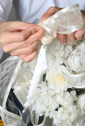 幅の広い贅沢感を感じさせるリボンを結びます。